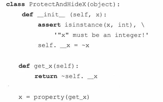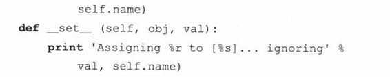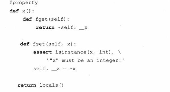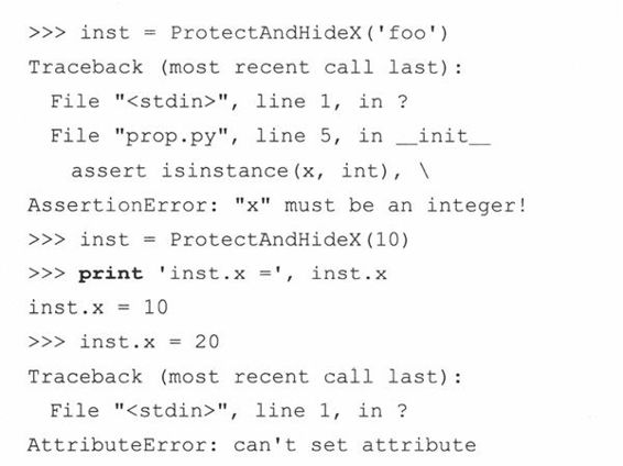 13-21.装饰符和函数调用语法。第13.16.4节末尾,我们使用过一个装饰函数符把x转化成一个属性对象,但由于装饰符是Python2.4才有的新功能,我们给出了另一个适用于旧版本的语法: