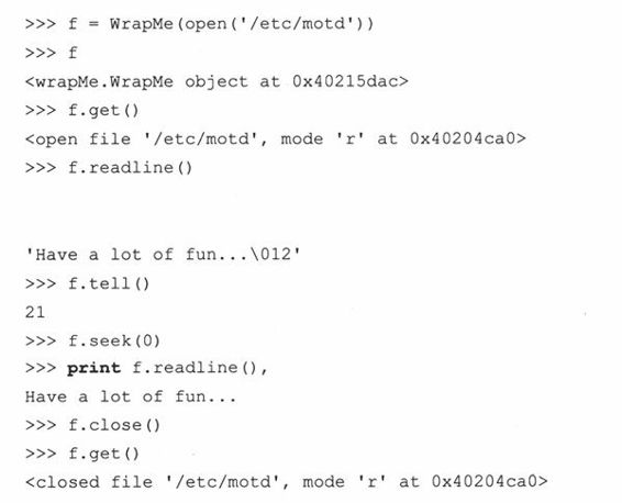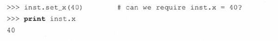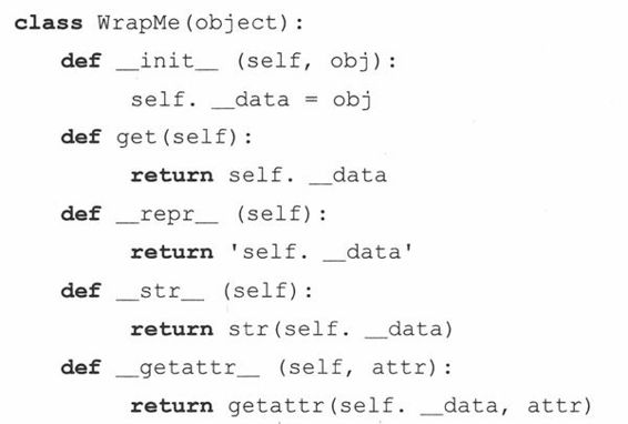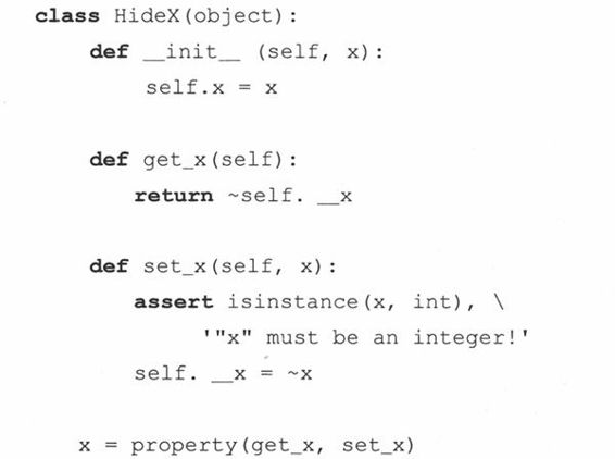 封装描述了对数据/信息进行隐藏的观念,它对数据属性提供接口和访问函数。通过任何客户端直接对数据的访问,无视接口与封装性都是背道而驰的,除非程序员允许这些操作。作为实现的一部分,客户端根本就不需要知道在封装之后,数据属性是如何组织的。在Python中,所有的类属性都是公开的,但名字可能被“混淆”了,以阻止未经授权的访问,但仅此而已,再没有其他预防措施了。这就需要在设计时,对数据提供相应的接口,以免客户程序通过不规范的操作来存取封装的数据属性。