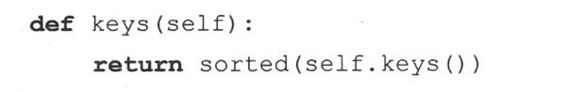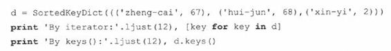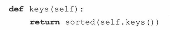 13-19.映射类型子类化。假设在13.11.3节中字典的子类,若将keys()方法重写为: