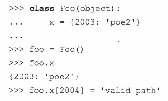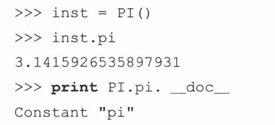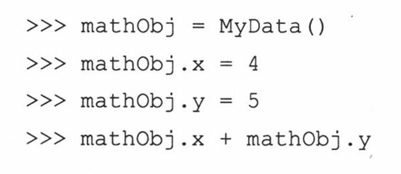 我们当然也可以使用变量“x”,“y”来完成同样的事情,但本例中,实例名字mathObj将mathObj.x和mathObj.y关联起来。这就是我们所说的使用类作为名字空间容器。mathObj.x和mathObj.y是实例属性,因为它们不是类MyData的属性,而是实例对象(mathObj)的独有属性。本章后面,我们将看到这些属性实质上是动态的:你不需要在构造器中,或其他任何地方为它们预先声明或者赋值。