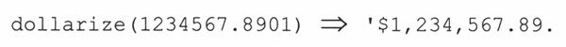 基本任务:编写一个dollarize()函数,它以一个浮点型值作为输入,返回一个字符串形式的金额数。比如说: