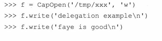 13-15.授权。示例13.8的执行结果表明我们的类CapOpen能成功完成数据的写入操作。在我们的最后评论中,提到可以使用CapOpen()或open()来读取文件中的文本。为什么呢?这两者使用起来有什么差异吗?