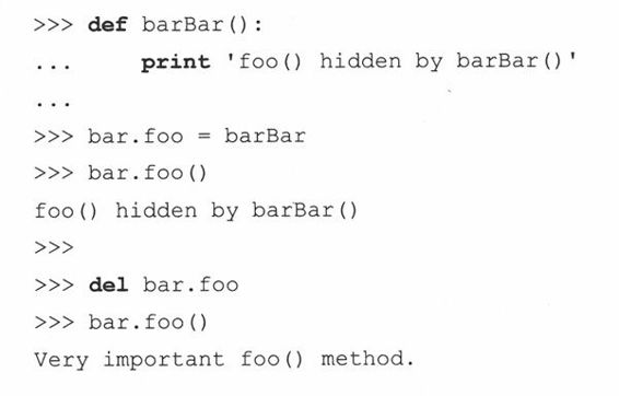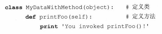 举例说明一下,假如你有一个带两参数的方法,所有你的调用只需要传递第二个参数,Python把self作为第一个参数传递进来,如果你犯错的话,也不要紧。Python将告诉你传入的参数个数有误。总之,你只会犯一次错,下一次……你当然就记得了!