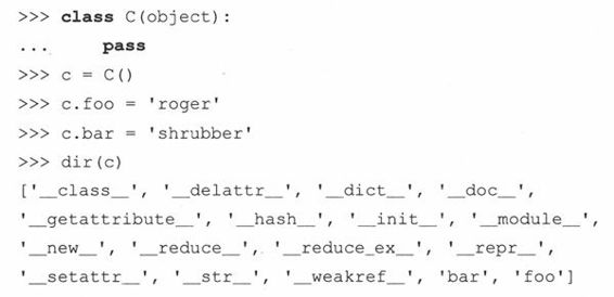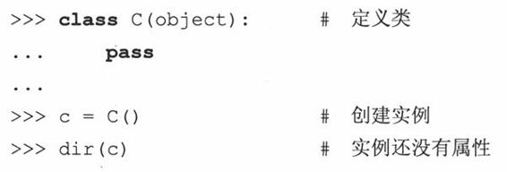 注意有的地方在语法构成上需要有一行语句,但实际上不需要做任何操作,这时候可以使用pass语句。这种情况,必要的代码就是类体,但我们暂不想提供这些。上面定义的类没有任何方法或属性。下面我们创建一个实例,它只使用类作为名称空间容器。