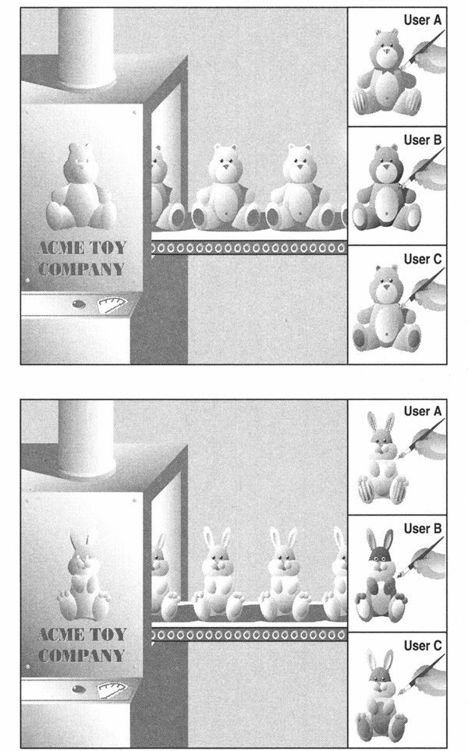 然而,如果我们能对数据加上动作呢?如果我们所创建和编写的数据片段,是真实生活中实体的模型,内嵌数据体和动作呢?如果我们能通过一系列已定义的接口(又称存取函数集合)访问数据属性,像自动取款机(ATM)卡或能访问你的银行账号的个人支票,我们就有了一个“对象”系统,从大的方面来看,每一个对象既可以与自身进行交互,也可以与其他对象进行交互。