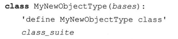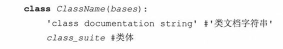 关键字是class,紧接着是一个类名。随后是定义类的类体代码。这里通常由各种各样的定义和声明组成。新式类和经典类声明的最大不同在于,所有新式类必须继承至少一个父类,参数bases可以是一个(单继承)或多个(多重继承)用于继承的父类。