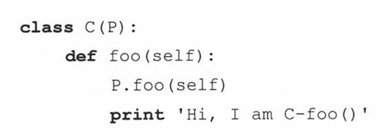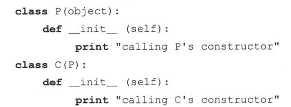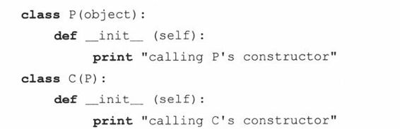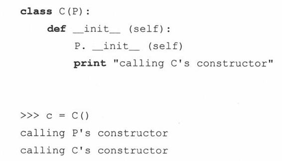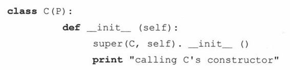 注意,这里我们要显式传递self实例对象给基类构造器,因为我们不是在该实例中而是在一个子类实例中调用那个方法。因为我们不是通过实例来调用它,这种未绑定的方法调用需要传递一个适当的实例(self)给方法。