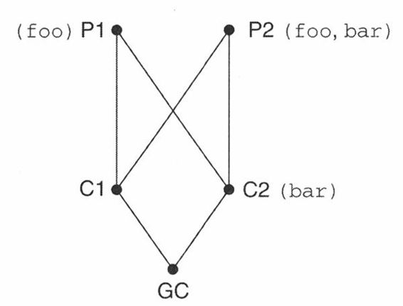 派生描述了子类的创建,新类保留已存类类型中所有需要的数据和行为,但允许修改或者其他的自定义操作,都不会修改原类的定义。继承描述了子类属性从祖先类继承这样一种方式。从前面的例子中,技工可能比顾客多个汽车技能属性,但单独的来看,每个都“是一个”人,所以,不管对谁而言调用talk()都是合法得,因为它是人的所有实例共有的。继承结构表示多“代”派生,可以描述成一个“族谱”,连续的子类,与祖先类都有关系。