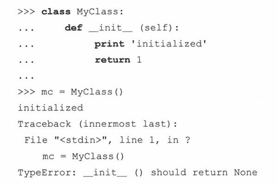 对于已熟悉面向对象编程的人来说,__init__()类似于类构造器。如果你初涉OOP世界,可以认为一个构造器仅是一个特殊的方法,它在创建一个新的对象时被调用。在Python中,__init__()实际上不是一个构造器。你没有调用”new”来创建一个新对象。(Python根本就没有“new”关键字)。取而代之,Python创建实例后,在实例化过程中,调用__init__()方法,当一个类被实例化时,就可以定义额外的行为,比如,设定初始值或者运行一些初步诊断代码——主要是在实例被创建后,实例化调用返回这个实例之前,去执行某些特定的任务或设置。