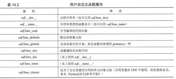 用户定义的函数(User-Defined Function, UDF)通常是用Python写的,定义在模块的最高级,因此会作为全局名称空间的一部分(一旦创建好内建名称空间)装载到系统中。函数也可在其他的函数体内定义,并且由于在2.2中嵌套作用域的改进,我们现在可以对多重嵌套作用域中的属性进行访问。可以用func_closure属性来钩住在其他地方定义的属性。