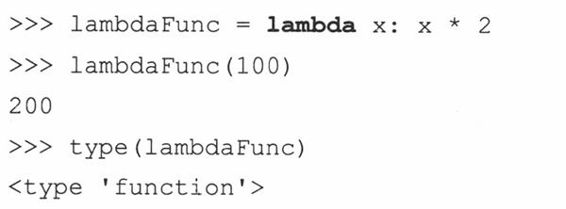 lambda表达式和用户自定义对函数相比,略有不同。虽然它们也是返回一个函数对象,但是lambda表达式不是用def语句创建的,而是用lambda关键字: