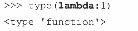 通过lambda来创建函数的对象除了没有命名之外,享有和用户自定义函数相同的属性;__name_或者func\_name属性给定为字符串“<lambda>”。使用type()工厂函数,我们来演示下lambda表达式返回和用户自定义函数相同的函数对象。