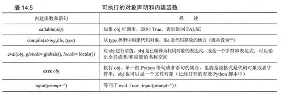 Python提供了大量的BIF来支持可调用/可执行对象,其中包括exec语句。这些函数帮助程序员执行代码对象,也可以用内建函数complie()来生成代码对象。