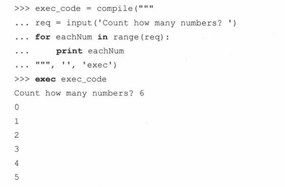 compile()函数允许程序员在运行时刻迅速生成代码对象,然后就可以用exec语句或者内建函数eval()来执行这些对象或者对它们进行求值。一个很重要的观点是:exec和eval()都可以执行字符串格式的Python代码。当执行字符串形式的代码时,每次都必须对这些代码进行字节编译处理。compile()函数提供了一次性字节代码预编译,以后每次调用的时候,都不用编译了。