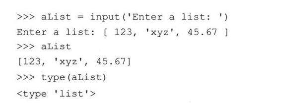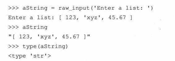 下面的例子会让人更加清楚:当用户输入一个列表时,raw_input()返回一个列表的字符串描绘,而 input()返回实际的列表: