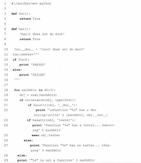 14-11.生成和执行Python代码。用funcAttrs.py脚本(例14.4)加入测试代码到已有程序的函数中。创建一个测试框架,每次遇到你特殊的函数属性,它都会运行你的测试代码。