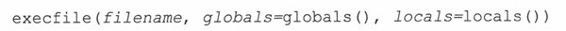 虽然上述代码执行了一个模块,但是仅可以在现有的执行环境下运行(比如,它自己的全局和局部的名称空间)。在某些情况下,可能需要用不同全局和局部的名称空间集合,而不是默认的集合来执行模块。execfile()函数的语法非常类似于eval()函数的。