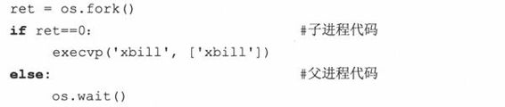 接下来的代码在子进程中开始了一个称为“xbill”的可爱小巧的游戏,而父进程继续运行Python解释器。因为子进程从不返回,所以无需去顾虑调用exec*()后的子进程代码。注意该命令也是参数列表中的必须的第一个参数。