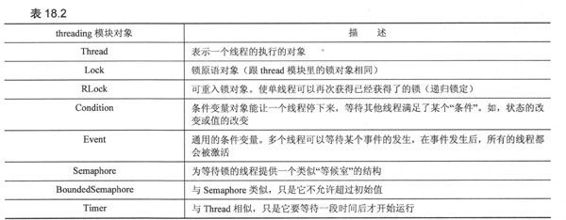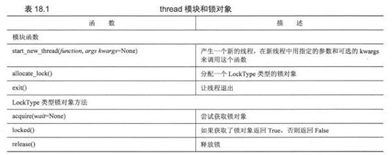 表18.1中所列的是常用的线程函数以及LockType类型的锁对象的方法。