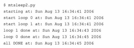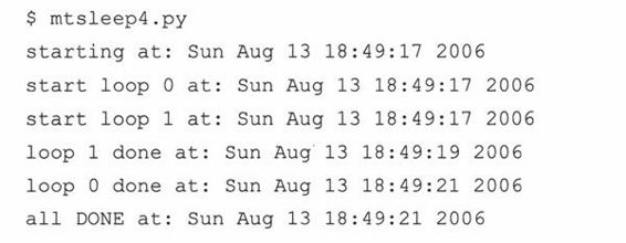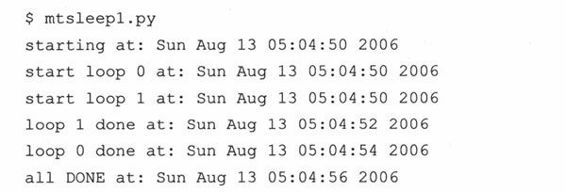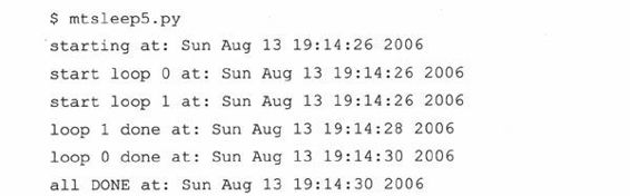 下面是mtsleep5.py的输出,同样,跟我们的期望一致: