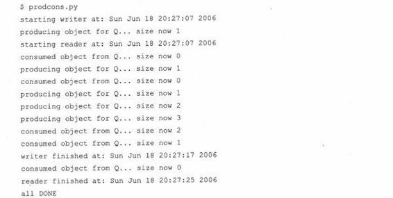 很容易地,我们就能写出例18.9的prodcons.py的代码。