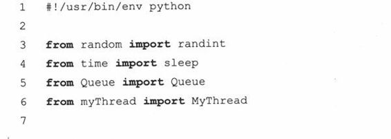 在这个模块中,我们要使用Queue.Queue对象和我们在例18.7中给出的线程类myThread. MyThread。我们将使用random.randint()函数来随机进行生产和消耗,并从time模块中导入常用的属性。