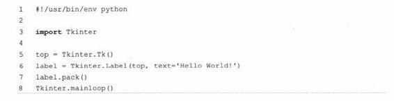 我们的第一个Tkinter例子是……还能是什么呢?“Hello World!”具体地说,是介绍我们的第一个组件:标签。