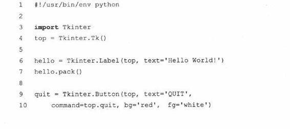 在例19.1中,我们展示了Tkinter版的“Hello World!”——tkhellol.py实际上,它利用组件向你展示了如何创建一个Tkinter应用程序