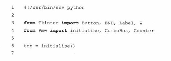 开始的几行包括通常的Unix启动行和导入os模块、time.sleep函数及Tkinter模块的所有属性。