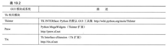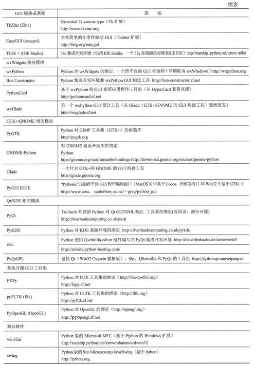 Python还有一些其他的GUI开发系统。我们在表19.2中列出适当的模块及其对应的窗口系统。