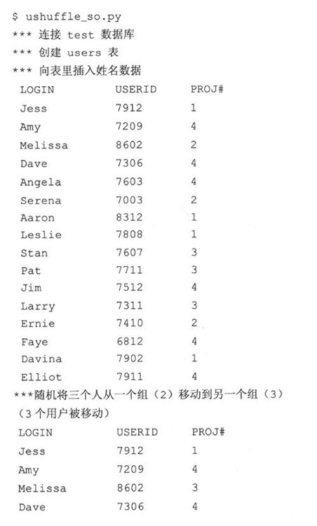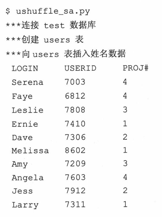 这个user shuffle程序的主角是SQLAlchemy前端和MySQL数据库后端。
