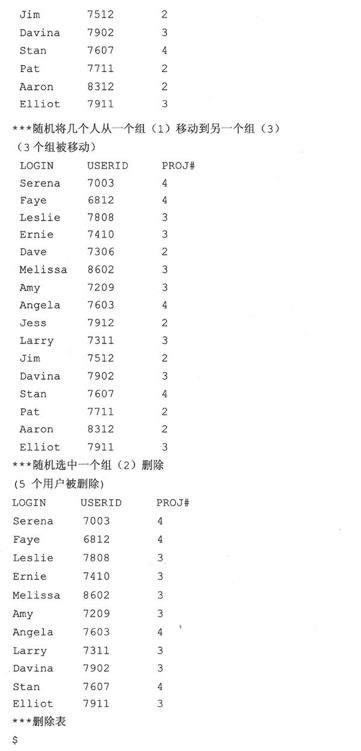 update()和delete()函数随机从一个组里选择了几条记录,如果是update操作,就将他们从当前小组移到另一个小组(也是随机选择的)。如果是delete操作,则删除它们。