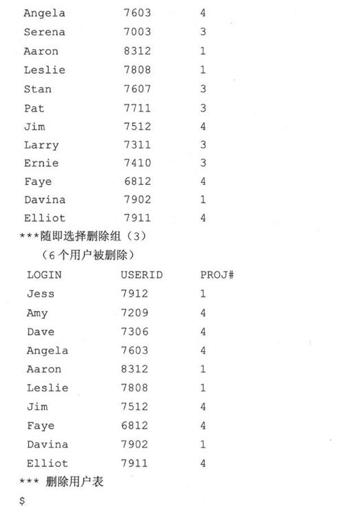 首先,通过fetchall()方法读取数据,然后迭代遍历每个用户,将三列数据(login、uid、 prid)转换为字符串(如果它们还不是的话),并将姓和名的首字母大写,再格式化整个字符为左对齐的COLSIZ列(右边留白)。由代码生成的字符串是一个列表(通过列表解析),我们需要将它们转换成一个元组以支持%操作符。