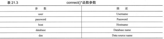 connect方法生成一个connect对象,我们通过这个对象来访问数据库。符合标准的模块都会实现connect方法。表21.3列出了connect()函数的参数。