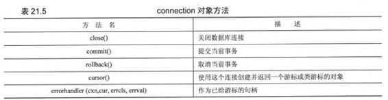 连接对象没有必须定义的数据属性,但是它至少应该定义表21.5中的这些方法。