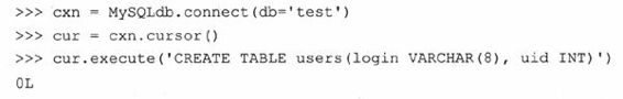 connect()调用。注意不是所有的接口程序都是严格按照规范实现的。MySQLdb就使用了db参数而不是规范推荐的database参数来表示要访问的数据库。