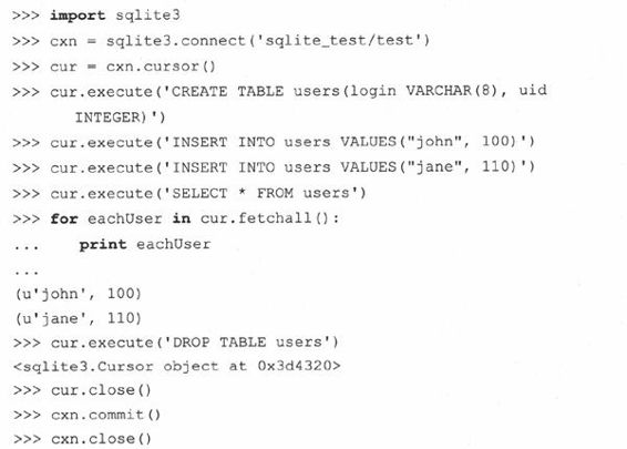 一个处理Python数据库事务的特殊事物小组(special interest group, SIG)因此诞生,最后DB-API1.0问世。DB-API为不同的数据库提供了一致的访问接口,在不同的数据库之间移植代码成为一件轻松的事情(一般来说,只修要修改几行代码)。接下来你会看到这样的例子。