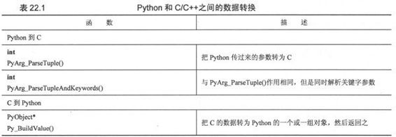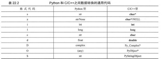 表22.2所列出的转换代码用于在C与Python之间做数据的转换。