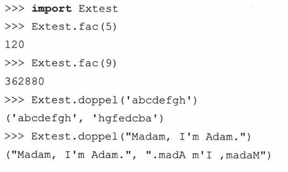 比方说,我们希望在Python中,能够导入(import)我们的fac()函数,其所在的模块名为Extest,那么我们就要创建一个包装函数叫Extest_fac().在使用这个函数的Python脚本中,使用方法是先“import Extest”然后调用“Extest. fac() ”(或者先“from Extest import fac”,然后直接调用“fac()”)