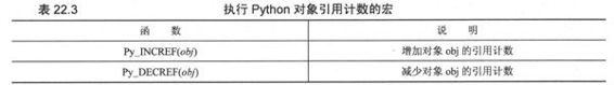 Python提供了一对C的宏,可以用来改变Python对象的引用计数,见表22.3.