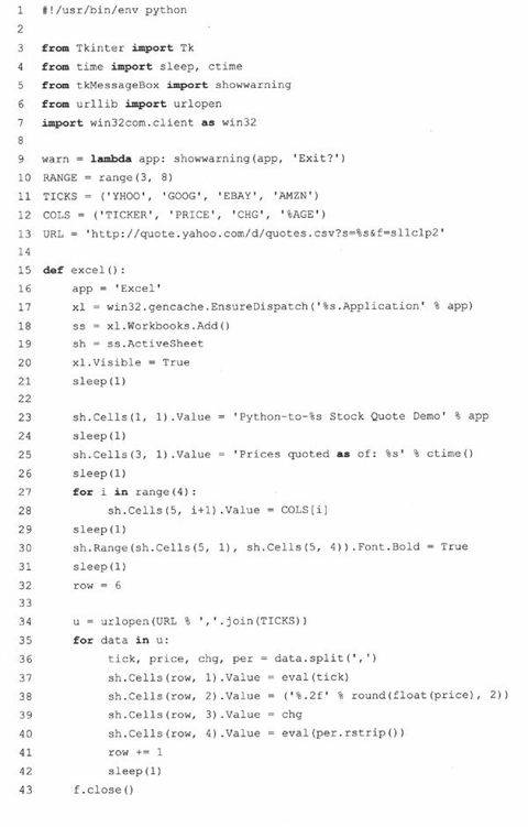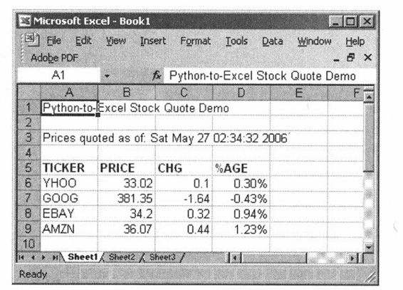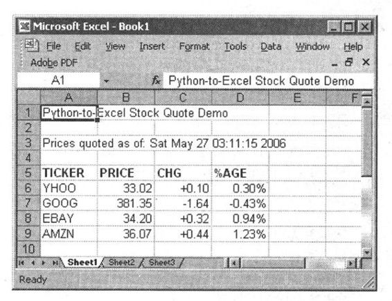 图 23-7 Python-to-Excel股票报价示例脚本(estock.pyw)