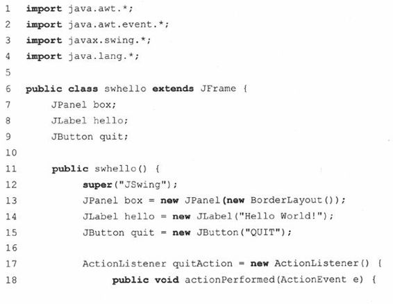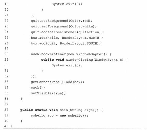 例23.7 在Java中,用Swing写“Hello World” (swhello.java)