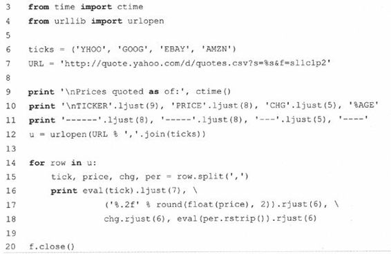 例23.1 Yahoo! Finance股票报价示例(stock.py)