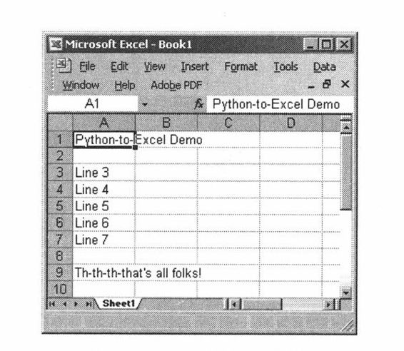图 23-1 Python-to-Excel示例脚本(excel.pyw)