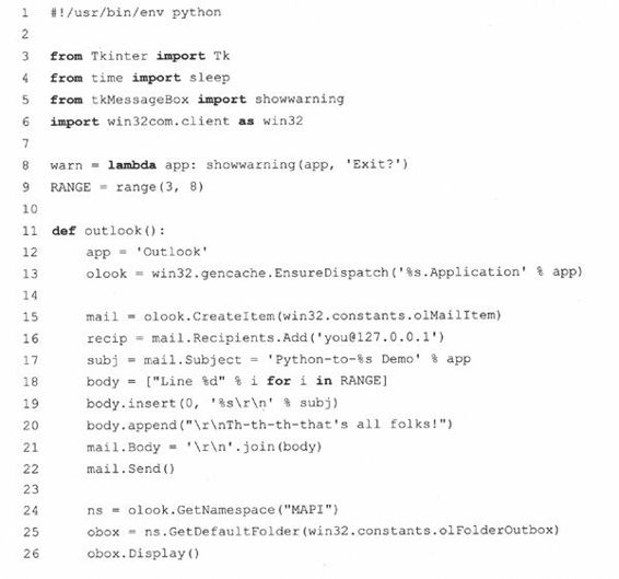 图 23-4 Python-to- Outlook示例脚本(olook.pyw)