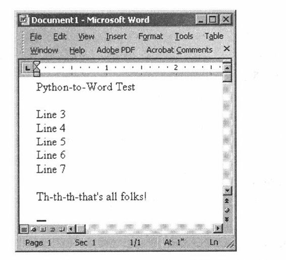 下面来演示一下如何使用Word。由于涉及到的数据不多,用Word写文档的可编程性就不是那么强了。你可以考虑用Word来自动生成格式化的信件等。不过,在例23. 3中,我们将创建一个文档,然后简单地写几行字。