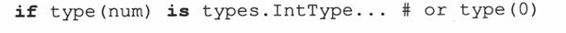 这是一个对前一个例子较小的改迸,如果你的程序像我们的例子中做很多次比较的话,程序的性能就会有一些差异。为了得到整型的对象类型,解释器不得不首先查找types这个模块的名字,然后在该模块的字典中查找IntType。通过使用from-import,你可以减少一次查询。