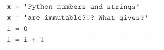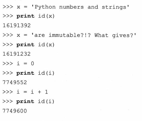 看完这个表之后,你可能马上冒出一个问题: “等等,你说数值和字符串对象是不可改变的?看看下面的例子!”