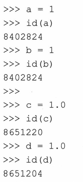 身份:每一个对象都有一个唯一的身份标识自己,任何对象的身份可以使用内建函数id()来得到。这个值可以被认为是该对象的内存地址。你极少会用到这个值,也不用太关心它究竟是什么。