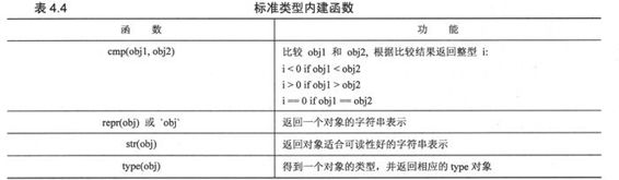 表4.5列出了所有操作符和内建函数,其中操作符顺序是按优先级从高到低排列的。同一种灰度的操作符拥有同样的优先级。注意在operator模块中有这些(和绝大多数Python)操作符相应的同功能的函数可供使用。